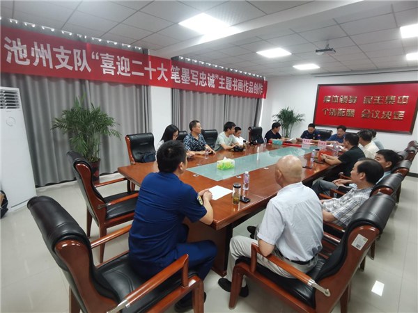 当天,在贵池区消防救援大队四楼会议室里,书画家和消防队员们欢聚一堂,共同开展了一场别开生面的“送文艺进消防”活动。参加活动的文联机关志愿者有贵池区文联党组书记、主席陈春明,区文联党组成员、副主席谢海龙,区文联党组成员赵学杏,区文联办公室文秘方小英、汪文娟;书法志愿者有区书协主席操礼友,区书协常务副主席董少云,副秘书长朱金亮、孙大林,省书协会员江茂来;美术志愿者有区美协主席罗和平,区美协名誉主席胡志学,省美协会员杜友成、陆益敏;