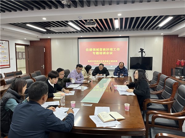 为全面完成住建领域优化营商环境工作任务,迎接2022年全市优化营商环境考评工作,11月17日,区住建局组织召开全区住建系统优化营商环境交流培训会。会议由局分管领导韦振宏主持,局机关、职能科室和二级机构全体包保干部参会。