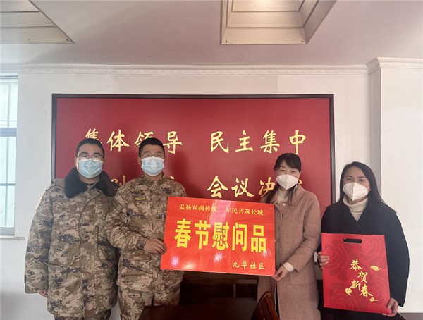 九华社区党委书记向部队官兵致以崇高的敬意和慰问,感谢区人武部对社区工作的指导与支持。并表示,在新的一年里,九华社区将进一步做好双拥工作,支持和服务部队建设,巩固发展军地友谊,谱写军地团结发展的新篇章。