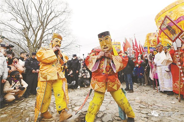 2月3日,池州市贵池区梅街镇源溪村缟溪曹朝社树傩舞表演。