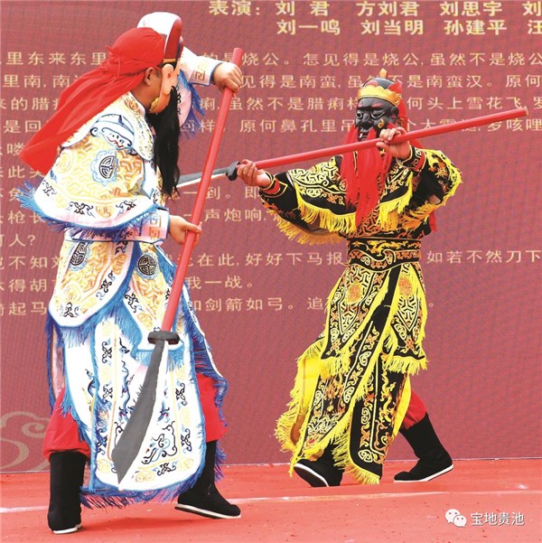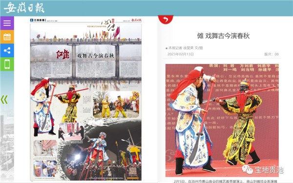 2月5日,在池州市青山庙会的傩艺荟萃展演上,南山刘傩戏会表演傩舞《刘文龙·交战》。