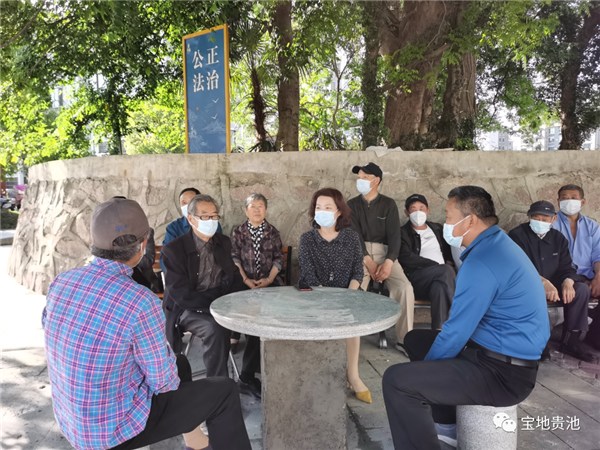 长满青苔挂满红绸的古树下,社区干部经常和居民们一起围坐在社区公园休憩处开展恳谈活动,共同为社区文明发展出谋划策。“我们这边属于城乡接合部,有的基础设施还没跟上”“最近居民楼里有人乱贴小广告,还要及时清理”“小区里停车位没有箭头,车子各个方向都有影响美观”……大家纷纷发言说着自身想法,社区干部一一做好记录并反馈,能清理的立即安排人员整改,不能马上就办的整理好意见做好项目谋划逐步解决。原来,这几棵古树是居民闲暇时间的“集散地”,社区干部就因地制宜将古树打造成居民议事点,倾听基层群众的心声。
