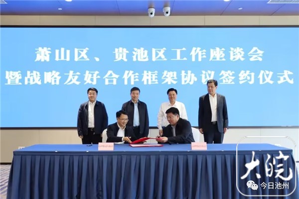 萧山和贵池两地签署合作框架协议。