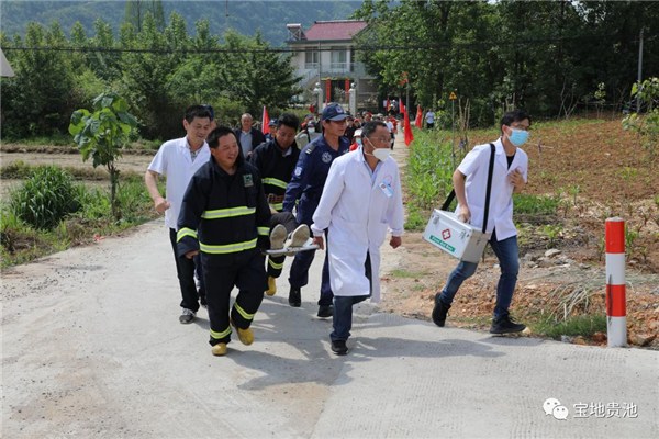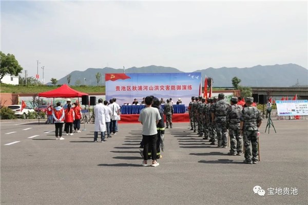 “报告指挥长,秋浦河水位已达24.0米,超警戒水位0.5米,高坦社区老街段居民可能遭受山洪威胁,建议启动山洪灾害防御预案。”5月16日上午,一阵急促的警报声打破了梅村镇高坦社区上空的宁静,秋浦河山洪灾害防御演练在此举行。监测水情、加固重点地段河堤、转移安置群众……经过一个多小时紧张而有序的演练,所有危险地段村民被全部转移到安全地带。