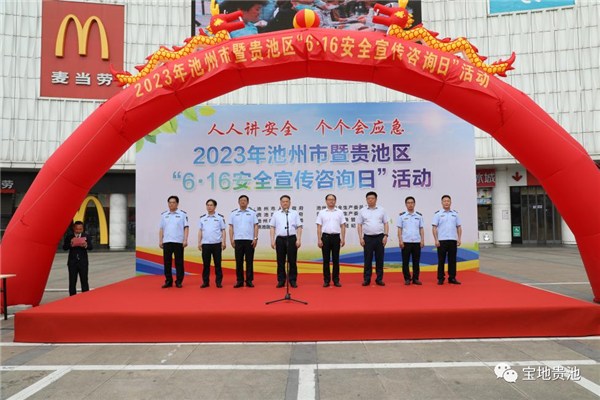 6月16日,在第22个“安全生产月”期间,池州市暨贵池区“6·16安全宣传咨询日”活动在远东国际广场举行。市委常委、市政府常务副市长方能斌到场指导并宣布活动启动。区委常委、区政府常务副区长张先卫,市、区有关部门负责人参加活动。