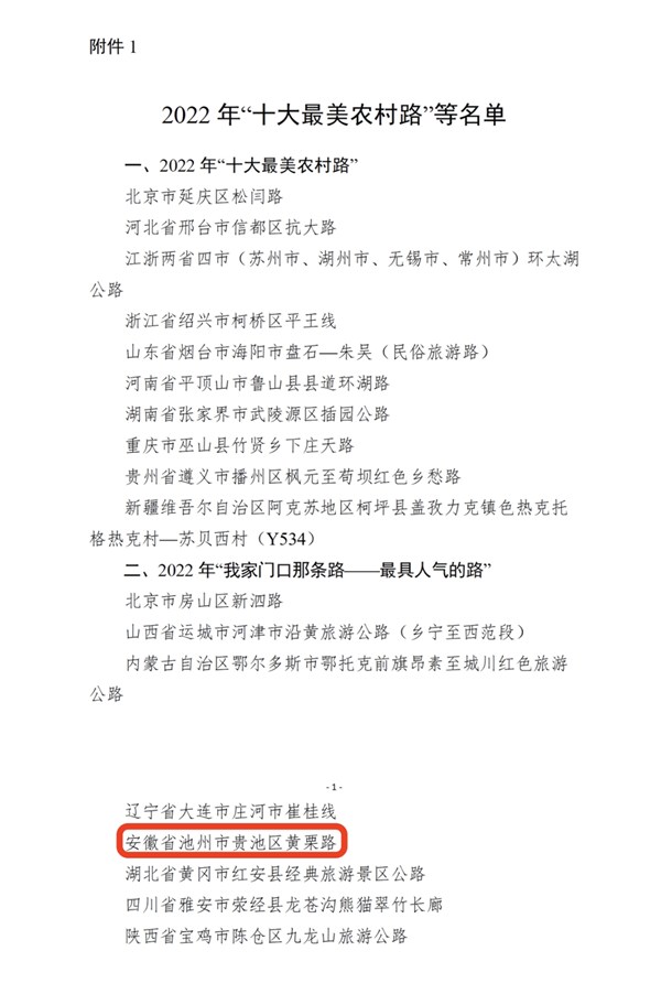 安徽省池州市贵池区黄栗路入选2022年“我家门口那条路——最具人气的路”
