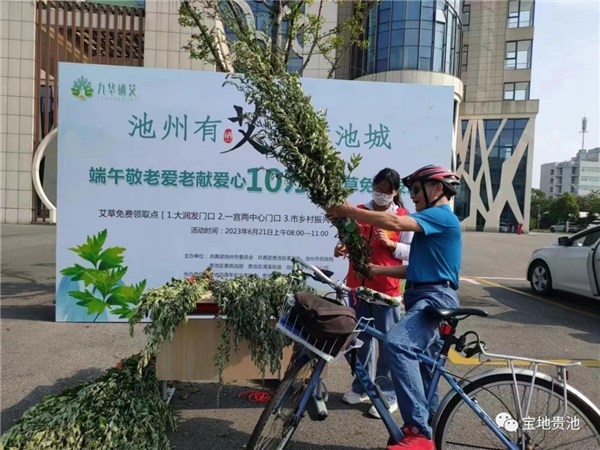 当天一早,志愿者们便奔赴主城区大润发广场、一宫两中心、市乡村振兴公司和翠屏苑社区设立了四个免费派送点,精心捆扎好10万株野生艾草,发放给来往市民,同时向大家科普端午节的文化内涵。