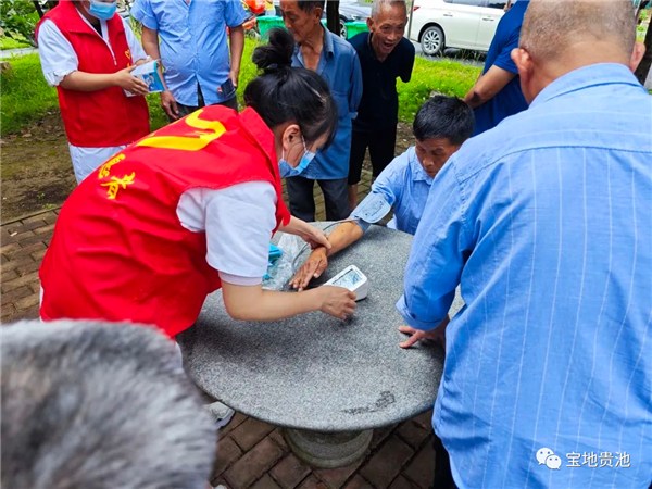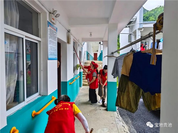 在舞蹈演出结束后,梅村镇卫生院医生们为老人量血压、测心率,同时详细询问和记录老人们的身体和生活状况,嘱咐工作人员要细心照顾老人,认真做好护理服务和情感交流工作。志愿者们也纷纷出动,他们拿起扫把、拖把、抹布,为老人们认真打扫生活区域的环境卫生,并清理墙壁、窗户上的蜘蛛网。