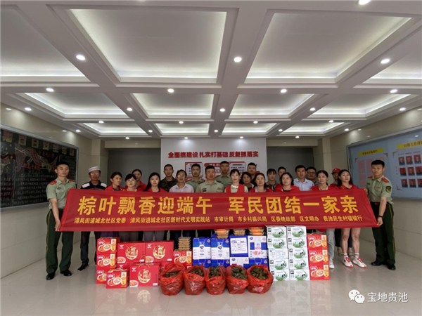 活动最后,社区工作人员和共建单位志愿者兵分两组,一组上门入户为辖区困难家庭、独居老人、残疾人等困难群体送去绿豆糕、大米、八宝粥等物品,另一组前往驻地武警部队为官兵们送上了粽子、牛奶等慰问品,同时也为他们送去了节日的祝福。