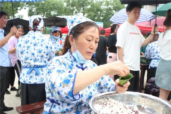 6月21日上午,许多市民在主城区提前收到了这份五彩线捆扎好的端午小礼品,原来,由池州市乡村振兴产业发展有限公司、市民政局、池州市共青团、区委统战部、贵池区共青团、清溪街道与安徽耕一亩农业发展有限公司合作举办的“池州有艾·艾满池城”活动正火热进行中。
