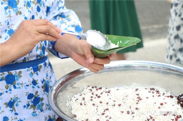 在活动现场笔者看到,社区工作人员和志愿者们早早就将包粽子的食材准备好,社区居民们围在一起热情地忙碌着,活动还邀请了辖区少数民族居民参与其中,有经验的居民手把手教他们一步步操作,一起学习包粽子,感悟传统节日的魅力。不一会儿,一个个清香四溢、饱含祝福的粽子相继诞生了。