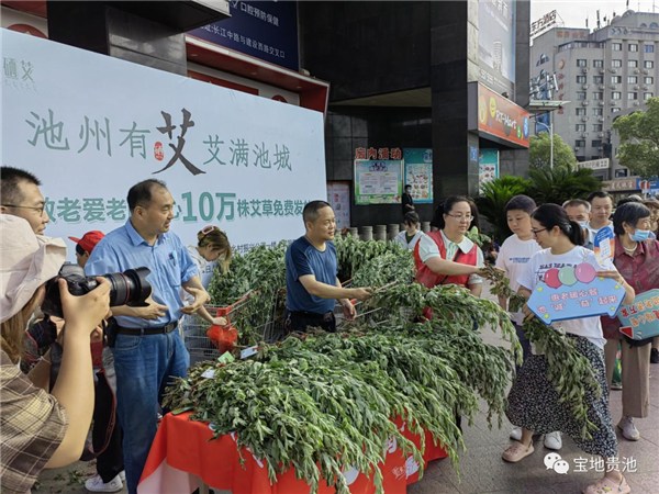 “免费送艾草啦!这是我们贵池本地种植的艾草,送您一株放家门口!”