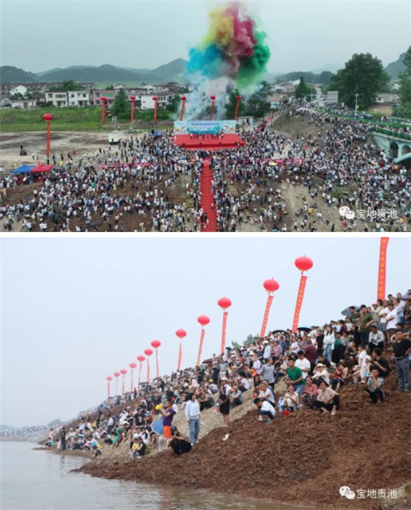 这个端午假期,民俗文化活动精彩纷呈,文化和旅游深度融合的新场景不断推陈出新,非遗民俗、传统文化等各色体验活动既惠客又惠民,成为端午假日旅游亮点。6月22日端午节当天,2023池州·殷汇“古镇有约 畅游殷汇”乡村文旅系列活动暨秋浦河龙舟民俗文化活动开展,接龙祈福、福鼓请龙、龙舟点睛、端午集市等活动轮番上演,丰富多样,精彩纷呈。龙舟赛更是上演了一场水上的“速度与激情”,现场游人如织,人山人海,热闹非凡。“龙舟比赛真的很精彩,端午氛围很浓厚!我也从这些活动中感受到了中华传统文化的魅力,对贵池的端午传统习俗了解得更多了。”从外地来贵池旅游的游客李女士笑着说。