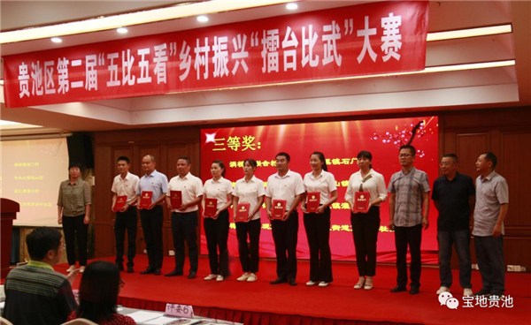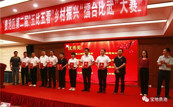 6月29日,一场号称“神仙打架” 的贵池区第二届村(社区)党组织书记“五比五看”乡村振兴“擂台比武”决赛鸣锣开赛。28名村(社区)党组织书记经过层层选拔,从各镇(街道)脱颖而出,轮番“上场”打擂比拼,进行最后的角逐。区委常委、组织部长、统战部长,区政协党组副书记,梅龙街道党工委书记严贞出席当天活动并为获奖选手颁奖。