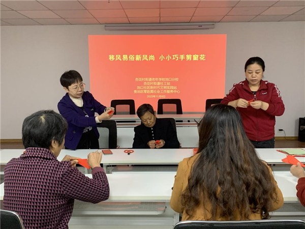 为弘扬传统文化,加深对中国传统手艺的认知和感受,11月28日下午,杏花村街道老年学校池口分校、杏花村街道社工站、贵池区零距离社会工作服务中心联合池口社区开展“移风易俗新风尚 小小巧手剪窗花”活动。