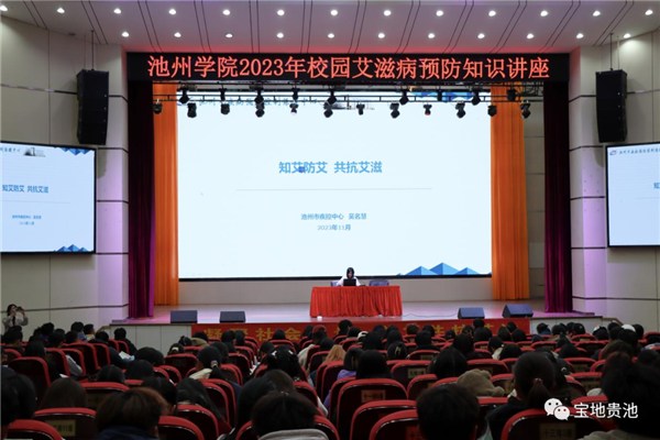 此外,在该校大讲堂上,一场精彩的池州学院2023年校园艾滋病预防知识讲座正在进行,深入浅出的讲解为大家介绍了艾滋病毒的传播特点、预防和检测方式等实用知识。参与当天活动的师生们表示,通过这场科普活动,更加深刻了解到什么是艾滋病、怎样预防艾滋病以及正视艾滋病患者。