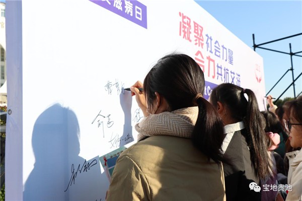 “艾滋病是能够预防的,一般的生活接触如握手、共用餐具、共用厕所、一起游泳等都不会传播艾滋病,病毒的传播途径主要是血液传播、性传播和母婴传播……”活动现场人头攒动,不仅播放了艾滋病宣传警示片,志愿者和工作人员还向师生们宣传艾滋病、梅毒、淋病等防治知识,仔细讲解国家防治艾滋病政策,并发放预防艾滋病、科学献血等健康宣传手册和各类生活健康用品。同时,在“凝聚社会力量,合力共抗艾滋”签名墙前,该校的师生们积极上前,郑重写下自己的名字。