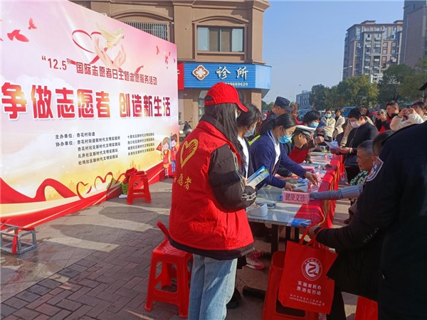 为大力弘扬“奉献、友爱、互助、进步”的志愿精神,在国际志愿者日当天的上午,杏花村街道联合杏花村街道新时代文明实践所、辖区7个社区新时代文明实践站以及市公安局、交通局等相关单位在香格里拉B区志愿服务广场开展“争做志愿者 创造新生活”主题志愿服务活动。