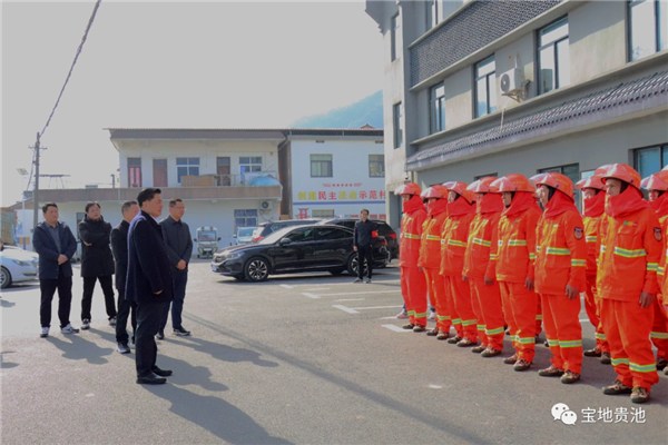 在督导检查森林防火工作时,马胜利一行先后来到齐山景区、梅街镇桃坡村、棠溪镇双合村等地,深入了解当前森林防火措施落实情况。马胜利现场检查了物资储备、人员备勤等情况,与镇街森林防灭火应急队员亲切交流,对他们为保护当地生态环境和提升群众安全感、幸福感做出的突出贡献给予充分肯定,向奋战在基层一线的队员致以衷心感谢和诚挚慰问,并勉励队员们要继续发扬敢打硬仗、能打胜仗的精神,保持攻坚克难、不怕吃苦的状态,扎实抓好各项工作,真正守好贵池的青山绿水。马胜利还叮嘱属地与相关部门要关心支持镇街应急消防救援站点和队伍建设,确保镇街应急消防救援体系有效运行,全力筑牢森林防火坚实屏障,切实保障群众生命财产安全。