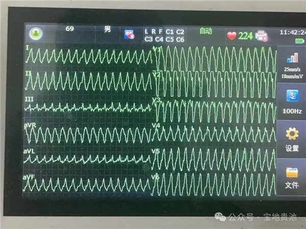 当天中午,池州市第二人民医院区域心电微信工作群接收到一份来自牛头山镇木闸社区的心电图,异常的波形变化让值班医师万庆栋的脑里立即拉响了“警报”,“考虑为室性心率过速。”