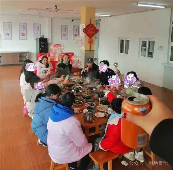 除夕这天,小圆在内的13名留院过春节的孩子们早早起床换上新衣迎新年。大厅里,工作人员和孩子们有的贴窗花、有的打气球、有的将饮料摆成各式好看的形状……一同将大厅布置得喜气洋洋,满是“家”的温馨。“大家收好红包!祝各位宝贝在新的一年身体健康、学习进步、开开心心!”到了年夜饭餐点,20多道孩子们共同票选出的美味佳肴陆续上桌,路范和众多工作人员选择留在院内,与孩子们共同度过这仪式感满满的阖家团圆时刻,大家举杯共饮,互相送上新年的祝福与期盼。春节假期,区福利院工作人员们纷纷放弃休假,和往常一样陪伴在孩子们的身边,“毕竟这里就是孩子们的家,越是节日,我们这些‘家人’就越该陪伴在他们的身边。”路范说道。