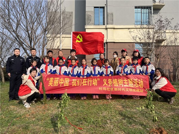 阳春三月,又是春暖添绿时。为践行绿色发展理念,提高居民保护生态环境意识,3月12日植树节当天,杏花村街道杜坞社区联合辖区共建单位开展“美丽中国 我们在行动”植树节主题活动,以实际行动将绿色文明思想根植于心,共同为辖区绿化贡献力量。