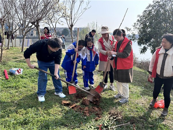 在大家的欢声笑语中,共同种下象征生机与活力的桂花树苗。只见一株株新苗迎风挺立,在和煦的春风中呈现勃勃生机。