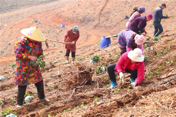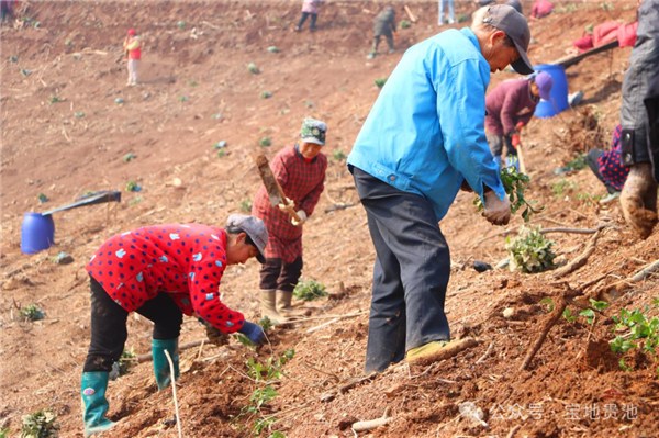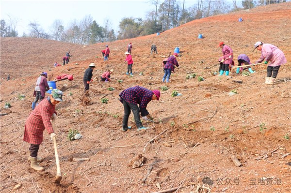 3月7日清晨,唐田镇扬名村白茶种植基地里云雾缭绕,瑟瑟寒气中几十名村民热情高涨,正忙着栽种白茶苗。大家分工合作,运苗、刨沟、打窝、栽苗、盖土、压紧……一幅“热辣滚烫”的春种景象图正在上演。
