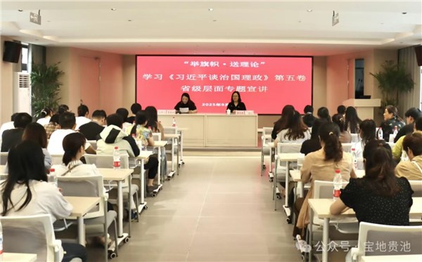 9月29日,“举旗帜•送理论”学习《习近平谈治国理政》第五卷省级层面专题宣讲报告会在我区杏花村街道池口社区开讲。省委讲师团理论宣讲专家库成员、安徽中医药大学马克思主义学院教授、硕士研究生导师魏冬捷作专题宣讲。