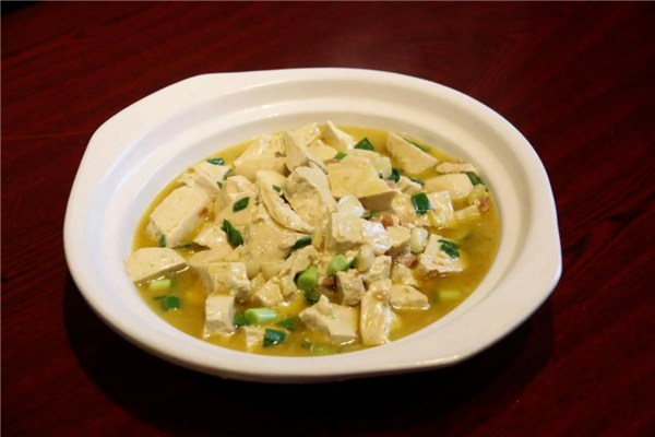 梅村豆腐是贵池特产之一,由本土优质大豆和霄坑大峡谷山泉水加工制作而成,口感鲜嫩爽滑,具有独特的豆香味,颜色呈白色或略带淡黄色。“梅村豆腐撕”就是利用当地的豆腐和农家自己腌制的火腿,把豆腐用手撕成小块和火腿粒翻炒出香气后,再用火腿高汤焖煮出的一道当地创新名菜。