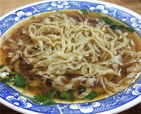 小刀面制作要放几个小时才能用,用大面皮压实后用刀裁切成细细的条,裁切出来面条个个有铜丝的粗细,甩进大锅里用滚水翻煮,再小心挑进碗里,搭配多年的特制“底料”。有的食客要加上几片牛肉,或加一块炸至两面金黄的荷包蛋,爱吃辣再加一勺辣酱,口水怎么也止不住了。