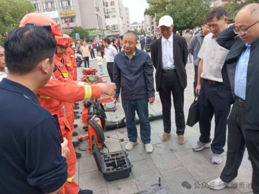 本次主题宣传活动突破了以往单一宣讲的模式,通过理论知识、场地实操多种方式结合,极大地提升了宣传活动的针对性和专业性。记者在现场看到宣传形式丰富多样、氛围热烈,在咨询台旁,一幅幅生动的防灾知识展板通过图解+文字的方式科普防灾减灾知识,市民们边阅读学习手册边向工作人员询问,他们耐心细致地答疑解惑。设备展示区,各式各样的防灾减灾设备陈列其中,救援队员现场展示如何正确使用:多旋翼无人机正在空中嗡嗡作响,其搭载的高清摄像头将广场全景实时传输到地面站的屏幕上。操作人员讲解道:“在灾害发生后,它能快速进入复杂环境进行航拍侦察,为我们评估灾情、规划救援路线提供‘天眼’支持。”另一边,市民在消防员的指导下,认真学习灭火器的操作口诀“提、拔、握、压”……不同的身影穿梭在人群中,构成了一幅全民参与、共筑安全的生动画面,防灾减灾的意识在欢声笑语与认真学习中深入人心。