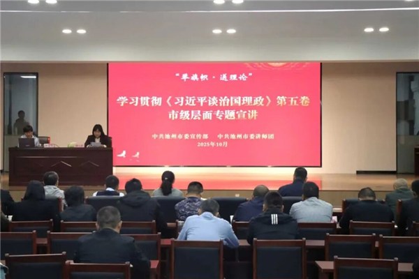 10月20日上午,“举旗帜·送理论”学习贯彻《习近平谈治国理政》第五卷市级层面专题宣讲在我区殷汇镇举办。市委讲师团理论宣讲专家库成员、市社科联三级调研员夏文华为当地党员干部群众带来一场内容丰富、阐述深刻的“专题辅导”,进一步引导大家从党的创新理论中找理念、找方法、找举措。