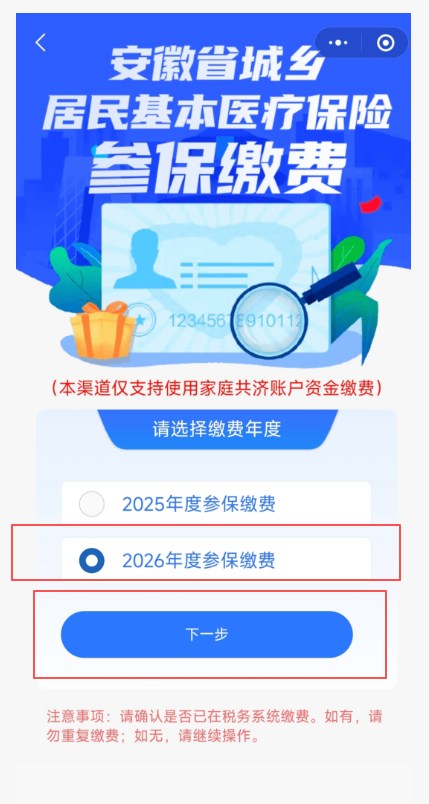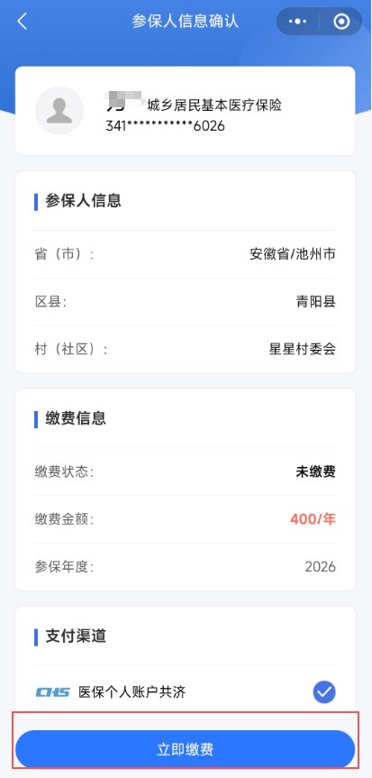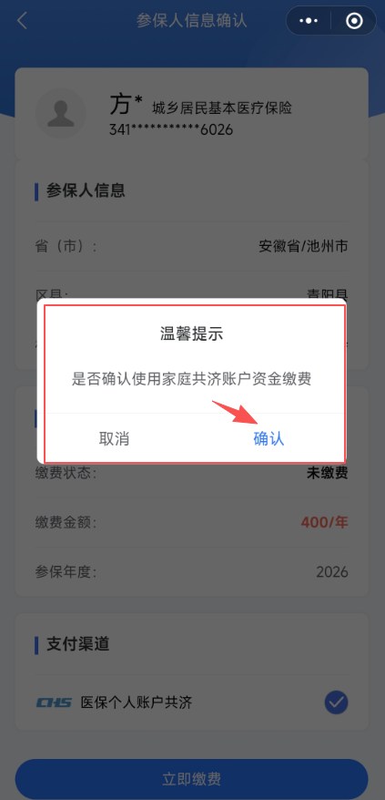 同时,在完成个人账户共济绑定的前提下,还可选择【城乡居民(个人共济账户)缴费】进行缴费。