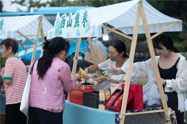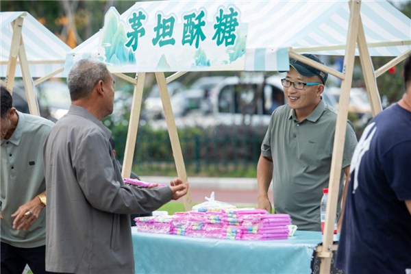 舞台左侧的非遗展销区同样人头攒动,气氛热烈。贵池区的西山焦枣制作技艺与茅坦酥糖制作技艺集中亮相。传承人与游客亲切交流,畅谈非遗美食背后的故事与工艺。游客在欣赏精彩演出的同时,还能了解、品尝地道的家乡非遗风味,体验别具特色的文化之旅。