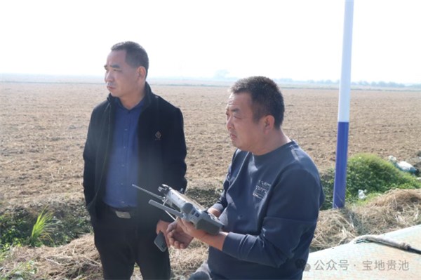 “前阵子连续阴雨天气耽误了些时间,还好现在有‘高科技’帮忙!不仅肥料撒得均匀,一点不浪费,连一亩地播多少种、行距留多宽都能精准控制,出苗率更有保障。”种粮大户刘兵一边遥控着无人机施肥一边指着田间作业的设备介绍。他计划播种的400多亩小麦地,以前需要六、七个人连轴转两天,如今借助旋耕机、精播机加无人机的“组合”,一天就能全部完成播种施肥,效率提高了两倍多。