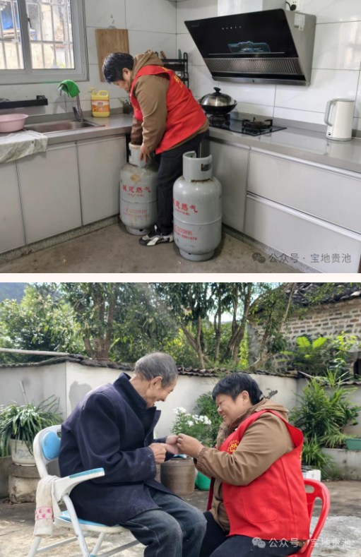在杨秀英的心里,也把老人当作家里长辈一样,谈起老人的相处的细节她如数家珍:“爹爹喜欢吃粑,还特别喜欢吃我做的,我有空都会提前准备好面粉和馅料,一边做粑一边陪爹爹奶奶聊天。”记者了解到,杨秀英负责对接村里包括李善水在内的4户低保户和20户五保户,坚持定期上门探望,给老人的晚年生活送去温暖陪伴。“我想着要给他们都照顾好,让他们每天过得都开心。”杨秀英说。
