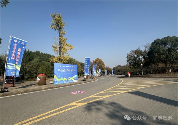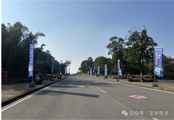景区入口处,氛围旗帜已整齐列阵、迎风招展,像是提前吹响的助威号角,将热烈的赛事氛围悄然拉满。