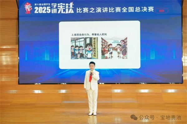 12月1日,由教育部主办的第十届全国学生“学宪法 讲宪法”演讲比赛总决赛在北京圆满落幕,来自贵池区实验小学的六年级学生许越荣获小学组总决赛一等奖,让“贵池声音”在全国法治教育的舞台上展露风采。