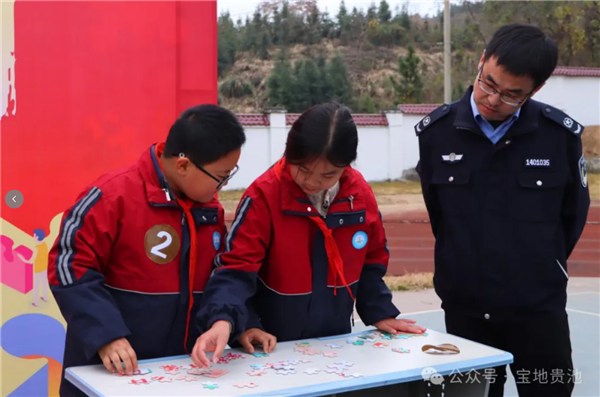 “我宣誓:忠于中华人民共和国宪法,维护宪法权威,履行法定职责……”活动在庄严的宪法宣誓仪式中拉开序幕。右手握拳,铿锵有力的誓言在学生们心里种下了敬畏宪法、遵守法律的种子。仪式后,学生们迎来了期待已久的互动实践环节:70余名学生分为8个小队,通过飞行棋、猜灯谜、扔飞盘等接力闯关游戏,在互动中学习法律知识、感悟法治精神。