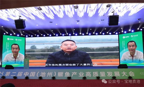 大会首先以视频方式特邀中国工程院院士刘少军作主题报告。作为长期致力于淡水鱼遗传育种研究的专家,刘少军院士在鳜鱼产业领域积淀深厚,始终以前瞻视野引领学科与产业发展。在报告中,他深入分析了当前鳜鱼产业的现状与潜力,并对池州鳜鱼产业的未来发展寄予殷切期望。刘院士建议,池州应进一步依托生态与区位优势,以鳜鱼种质创新为核心驱动力,大力推进池塘养殖设施化升级与设施养殖生态化转型,构建从良种培育、生态养殖到高效销售的完整产业链,推动全产业链向标准化、绿色化、高品质方向发展,最终形成具有池州特色和全国影响力的鳜鱼产业高地。