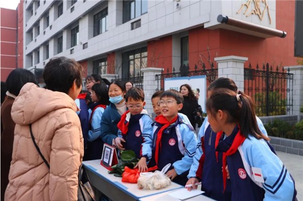 “瞧一瞧、看一看,纯天然、无公害,特别甜!”12月17日,贵池区城西小学门口东侧的空地变身为充满生机的“临时农贸市场”,一群系着红领巾的“小菜农”正热情洋溢地推销各自摊位上的蔬菜,一场别开生面的蔬菜售卖活动在这里火热举行。