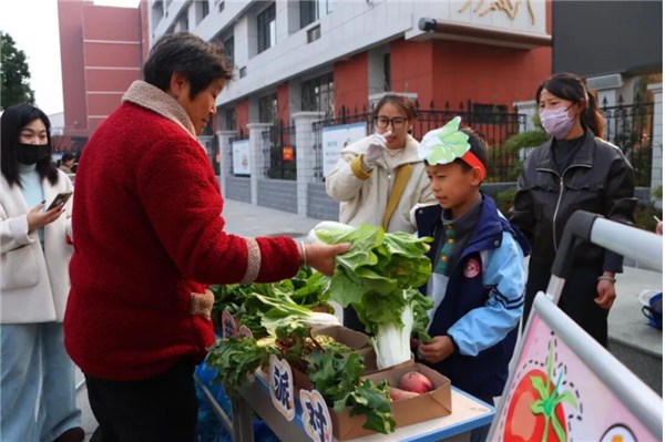“这些菜是我们自己翻土、播种、施肥的,看到有那么多的人来买,心里特别高兴。”城西小学五年级学生阮承熙说道。据了解,本次活动的蔬菜均是来自该校9月份正式投入使用的劳动教育基地,由学生亲手对“头茬”蔬菜进行采摘挑拣,分装成袋,每袋以2至5元的价格进行售卖。截至活动结束,该校共产出并售卖蔬菜约337斤。
