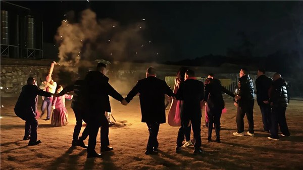 夜幕降临,村子里的山野火锅店灯火通明,成为跨年活动的核心地带。新鲜食材在沸腾的汤底中翻滚,散发出诱人香气,而庭院中,篝火熊熊燃烧,照亮了人们围坐的笑脸。市民们一边品尝火锅,一边欣赏夜空绽放的绚丽烟花。