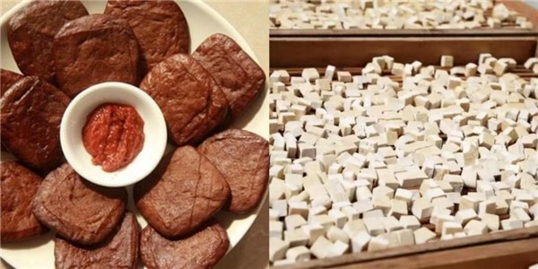 梅村豆腐干(乳)保持石膏点卤的传统加工方法,历经黄豆浸泡、磨碎、蒸煮、过滤、点浆、凝聚、浇制、压榨、划坯等工序,坯晒干成型后,再经长时间文火卤煮,让秘制的卤汁渗透其中,成为香气扑鼻的梅村豆腐干(乳)。经过发酵后的梅村豆腐乳,蛋白质分解为各种氨基酸,外观颜色酱红,内质玉白细嫩,韧而不硬、松而不散,吃起来酥软鲜香、口感淳朴。