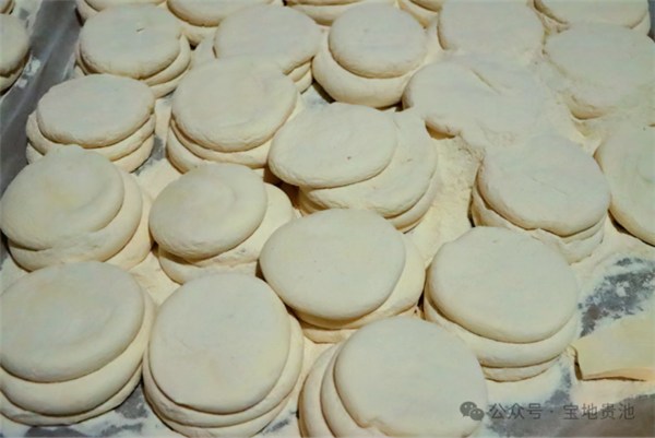 清甜的糖汁沁出,制糖便进入了最见功夫的环节——熬糖。铁锅内,糖浆咕嘟着气泡由稀转稠,钱立胜手握长铲,紧盯糖浆的色泽与拉丝的状态。近4小时不间断地搅拌、熬煮,待到一铲扬起,琥珀色的糖浆如绸缎般垂下,钱立胜拿起木棒缠绕些糖浆放入水中,冷却成晶莹酥脆的糖丝,这锅糖稀终于算是大功告成。接着,他将冷却的糖稀送入了拉糖器械。琥珀色的糖在拉扯间变得雪白,一部分摊开窝入芝麻、白糖、黄豆粉等炒香的馅料,再仔细封口、揉搓、拉长,截成寸段,最终成为内藏“乾坤”的灌芯糖;另一部分被分成一小团一小团,冷却后就成了手掌大小的糖粑。
