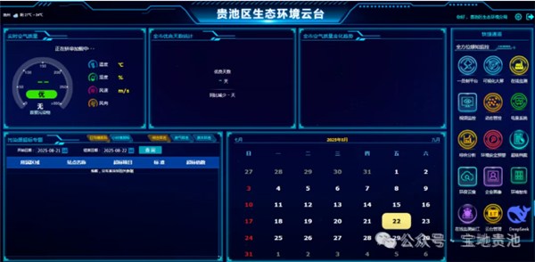 生态修复需“精准缝合”,更需长效守护。贵池积极拥抱数字技术,创新打造生态环境智慧监管云台,实现从分散管控到“一屏统管”的跨越升级,为生态保护装上“智慧大脑”。