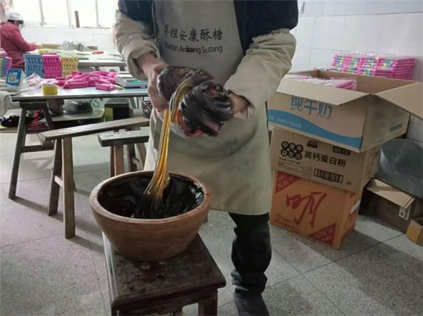 “骨子”是魂。精选的糯米与麦芽在陶缸中静静发酵,滤出的汁水澄黄清亮。倒入铁锅,柴火慢熬,杜尔琳手持长柄铜勺,在氤氲的甜雾中不停搅动。糖浆从稀薄到浓稠,色泽由浅黄转为透亮的琥珀色。“要熬到‘滴水成珠’,拉起尺把长的丝不断,才算成。”杜尔琳边说边挑起一勺,糖丝如绸缎垂下,在晨光里闪着温润的光泽。