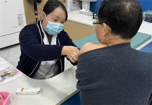 “带状疱疹俗称‘缠腰龙’,是由水痘-带状疱疹病毒引起的感染性疾病,这种病毒通常藏匿在人体脊髓后根神经节或颅神经感觉神经节内,当人体免疫力下降时会被重新激活,进而在神经支配区的皮肤形成成簇丘疱疹和水疱,且伴有严重神经痛,多发生在单侧身体。”该社区卫生服务中心预防接种室负责人、副主任护师王小凤介绍,从50岁开始,人体细胞免疫功能会明显下降,带状疱疹发病率也随之显著攀升,因此在此节点前接种疫苗,能有效建立免疫屏障,抵御病毒侵袭。此外,糖尿病、心血管疾病、慢阻肺等慢性疾病,也是带状疱疹发病的高风险因素,并且慢病患者罹患带状疱疹后,还可能加重原有病情,身心与经济负担也会随之加重。
