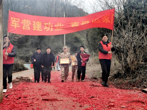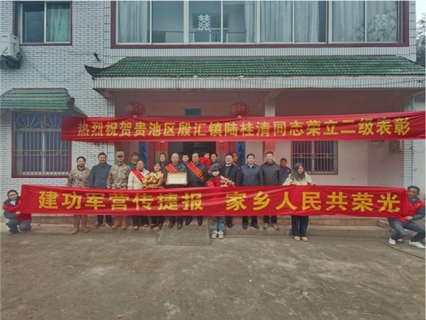 在春节临近的浓浓年味里,一份来自雪域高原的特殊“新年礼物”,奏响了贵池军民同心、尊崇奉献的时代和声。2月5日上午,在殷汇镇联丰村,一阵清脆的鞭炮声和铿锵的锣鼓声,打破了小山村的宁静,由区政府副区长桂涛带队,区人武部、区退役军人事务局有关人员及镇村干部组成的“报喜团”,翻山越岭,将立功喜报送到了村民陆政喜、郑风银夫妇的手中。
